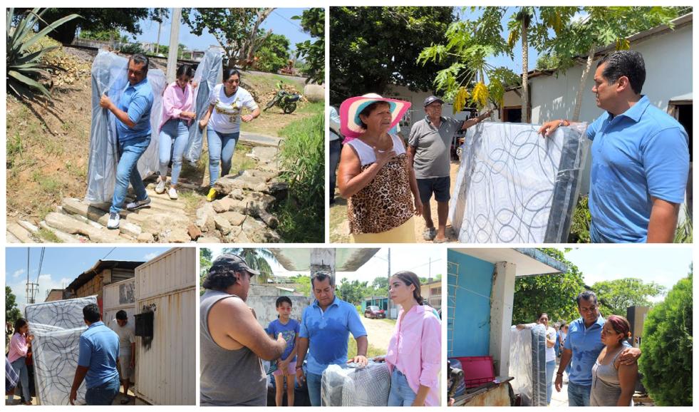 Acompañado de su esposa, la diputada Diana Karina Barreras Samaniego, la legisladora local por Minatitlán, Jessica Ramírez Cisneros, las hermanas Gisela y Angélica Uscanga, ex síndica y ex diputada respectivamente, así como el líder Pablo Ríos, el representante popular canalizó las aportaciones de colchones y enseres domésticos a familias de la colonia Santa Clara, cuyas viviendas se inundaron la semana pasada.