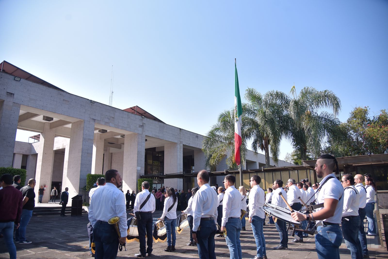 Tras los honores respectivos, el izamiento del lábaro patrio y la entonación del Himno Nacional Mexicano por parte de los presentes, el secretario de Servicios Administrativos y Financieros de este Congreso, Alfredo Alberto Martínez Gómez, hizo uso de la palabra.