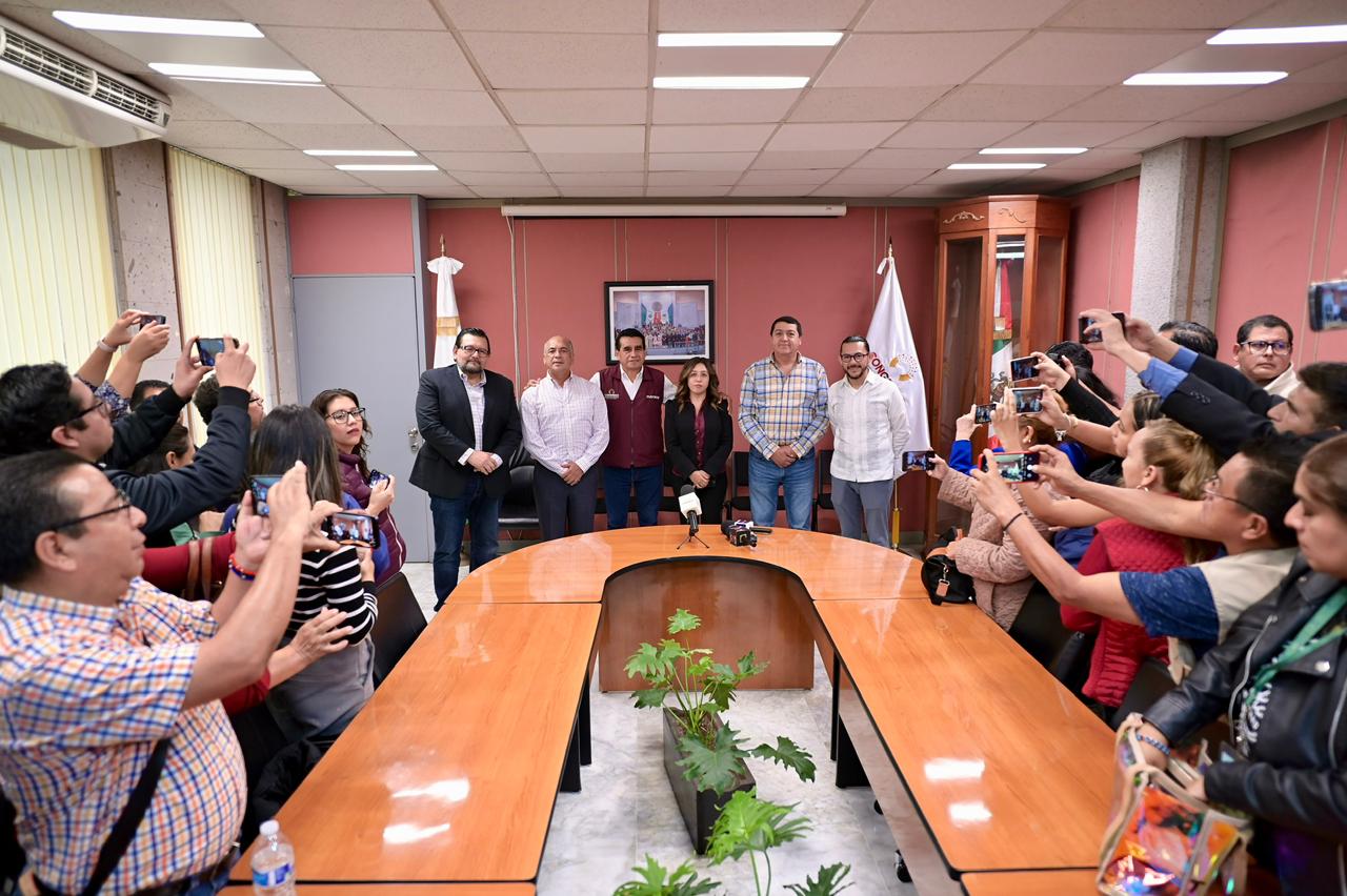 Los coordinadores de los Grupos Legislativos de Morena, Partido Verde Ecologista de México (PVEM) y Partido Acción Nacional (PAN), la presidenta de la Mesa Directiva, diputada Naomi Edith Gómez Santos, y los diputados del Partido del Trabajo (PT) y de Movimiento Ciudadano (MC), anunciaron en conferencia de prensa el Acuerdo para donar un mes de salario de cada diputada o diputado integrante de la LXVII Legislatura, en un acto de unidad y solidaridad con las personas afectadas por las inundaciones registradas en el norte de Veracruz.